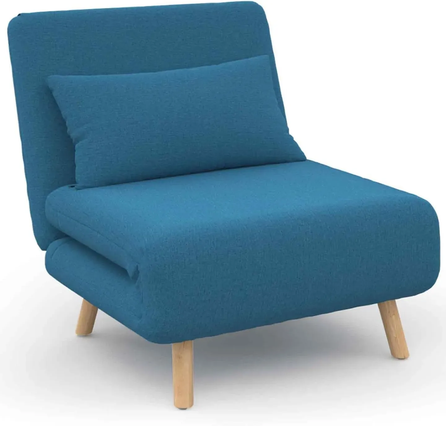 IDMarket - Chaise Longue Convertible Romeo 1 Place en Tissu Bleu Canard 80x190 cm