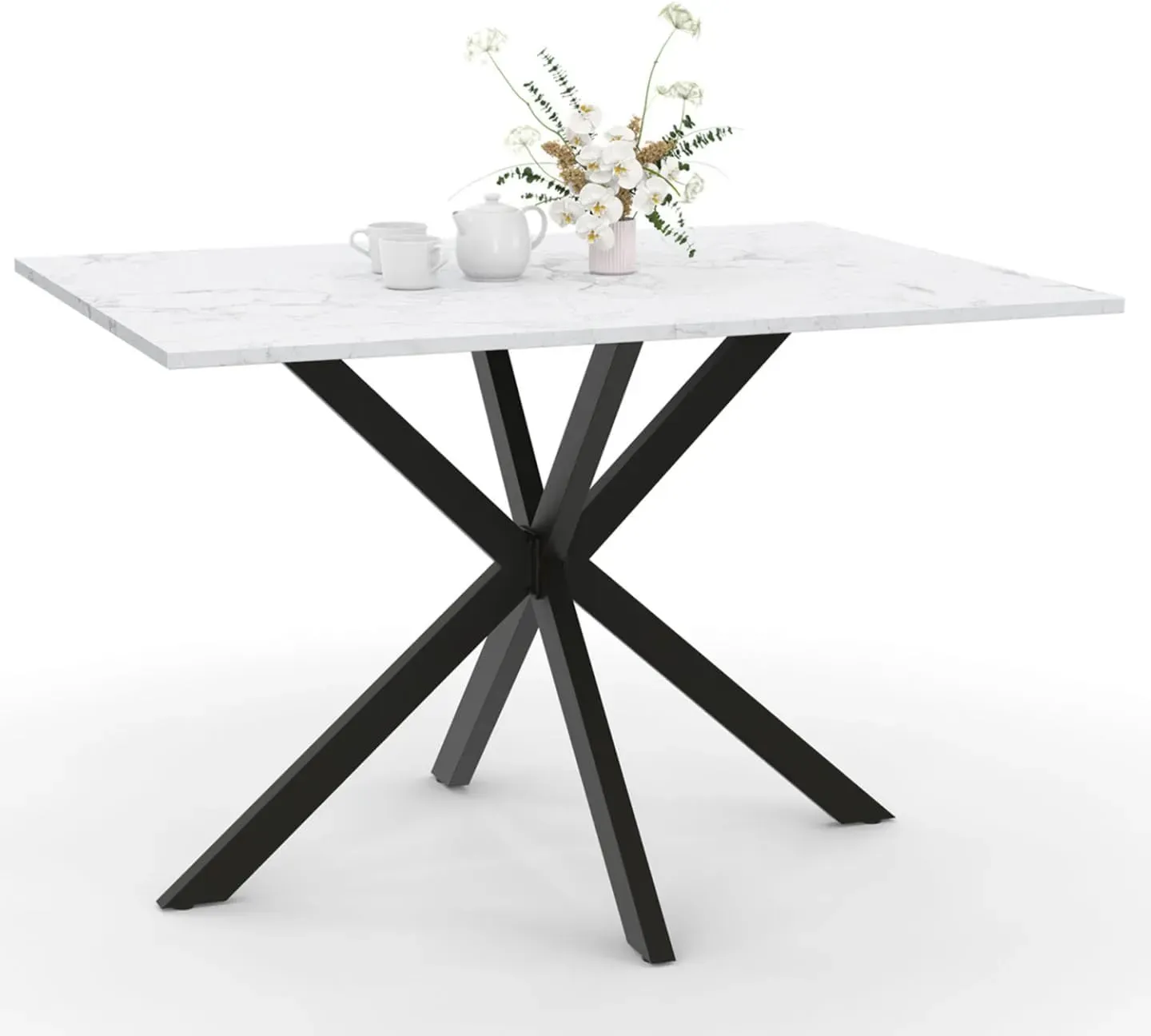 IDMarket - Table Rectangulaire Alix 6 Convives, Pieds Noirs Design et Plateau Imitation Marbre Blanc 110 cm